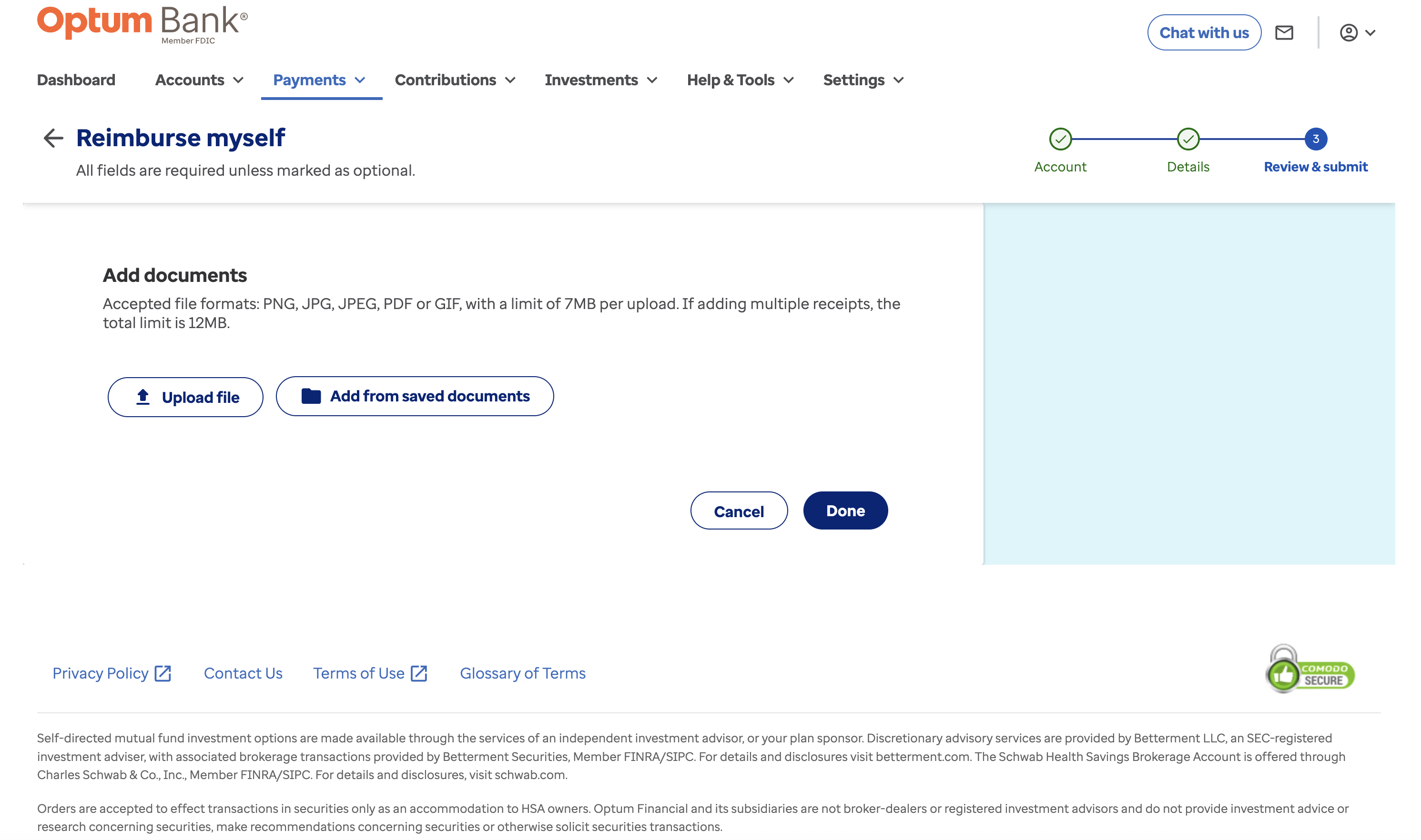 Select “Add Document” and upload your receipt and you Truemed LMN